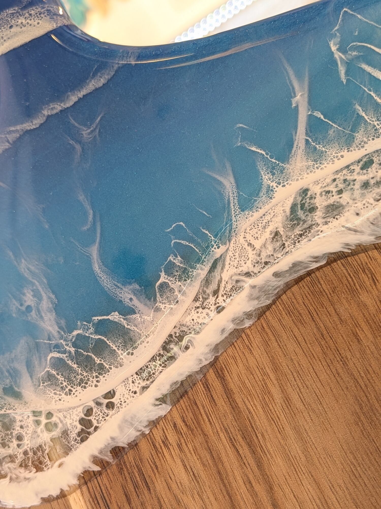 手作りのこのカッティングボードは、各々異なる模様を持ち、あなただけの特別な一品となります。贈り物にもぴったりです!ぜひ、エメラルド×ブルーの美しさを感じながら、楽しい料理の時間をお過ごしください。