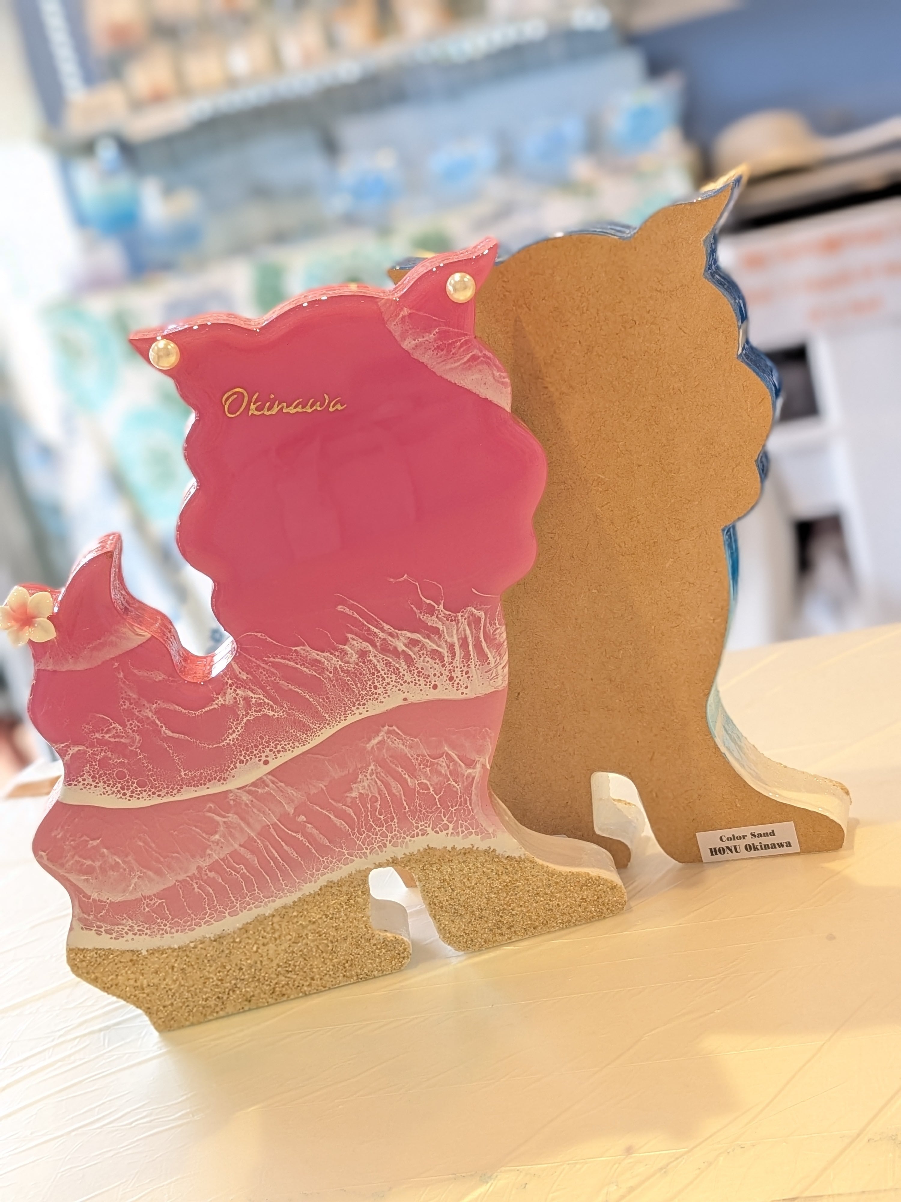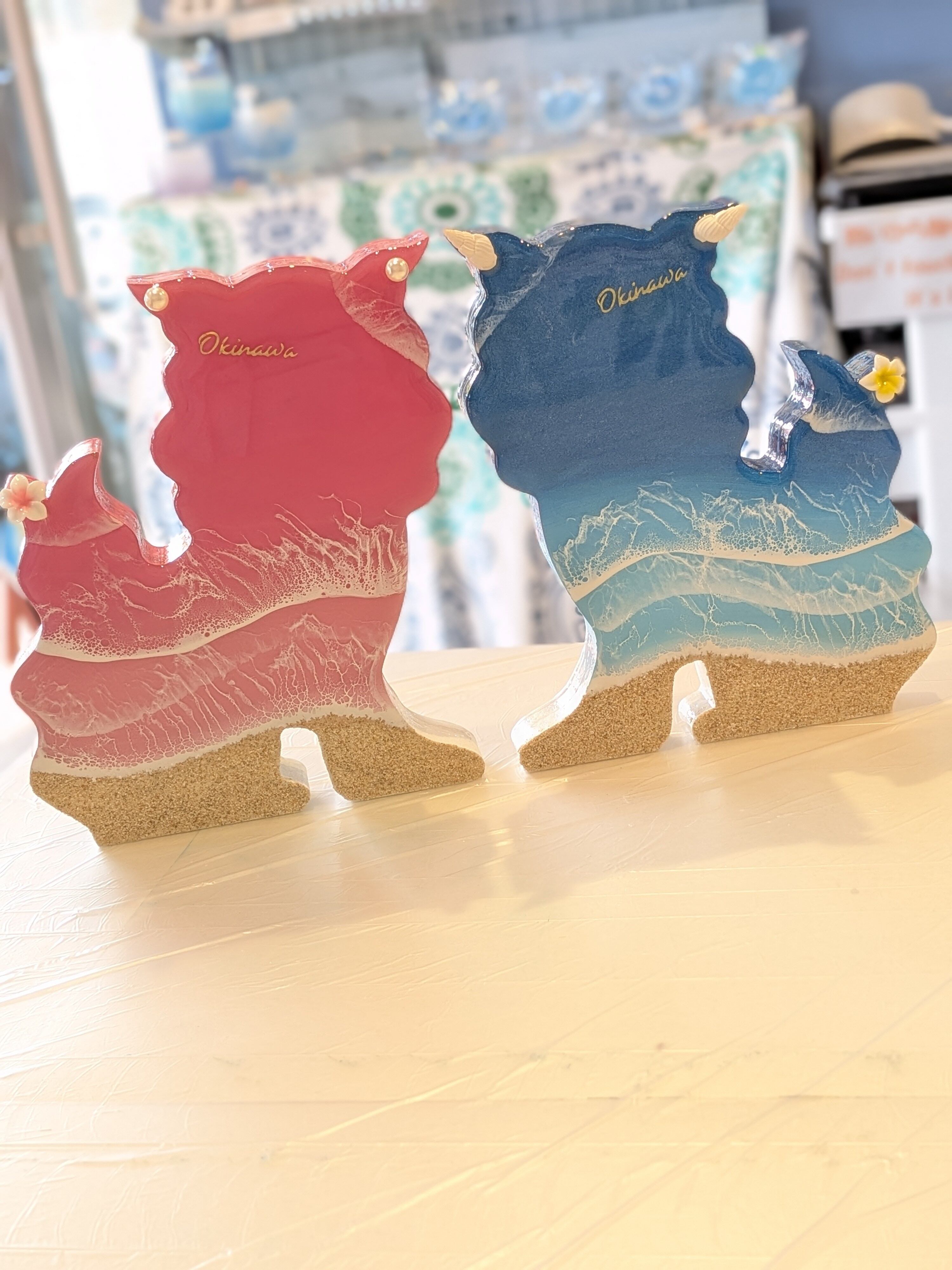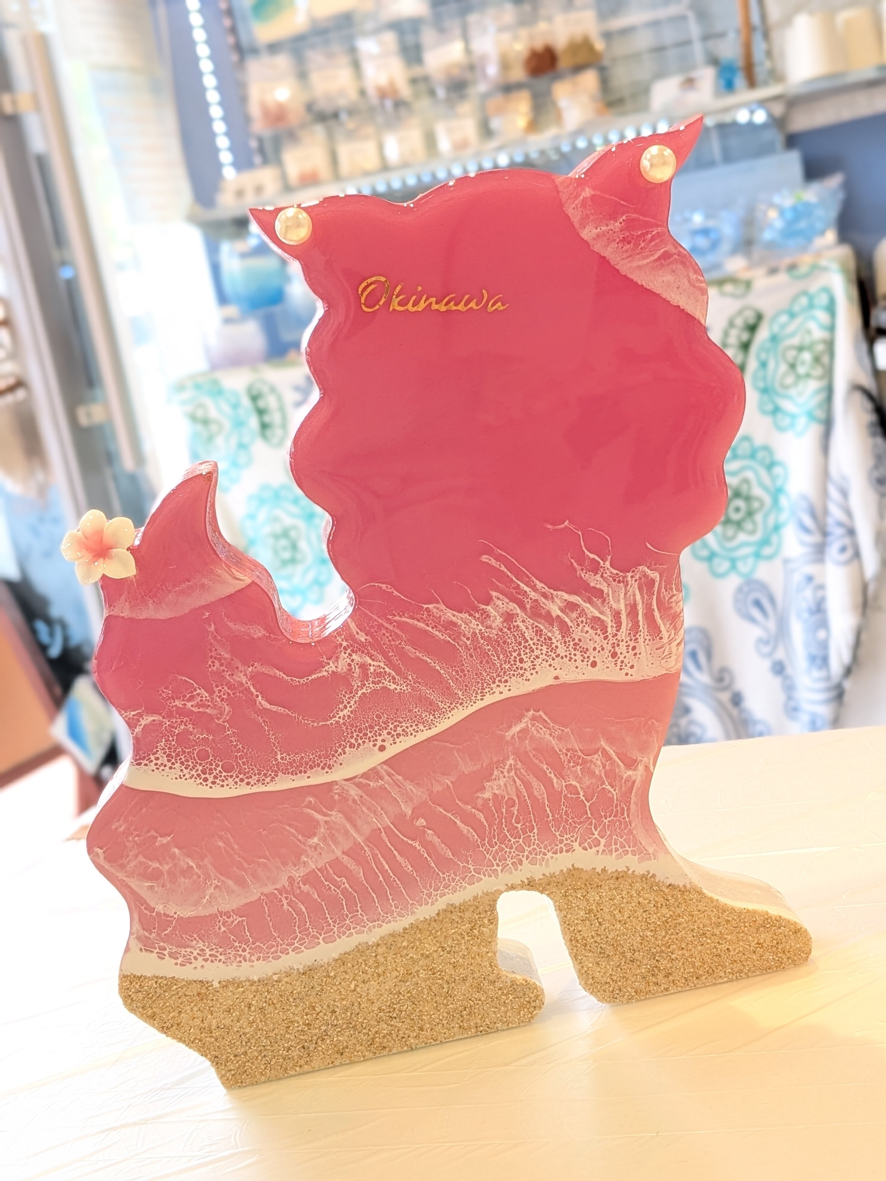⑨シーサーのオーシャンアート ピンク (メス) レジンアート