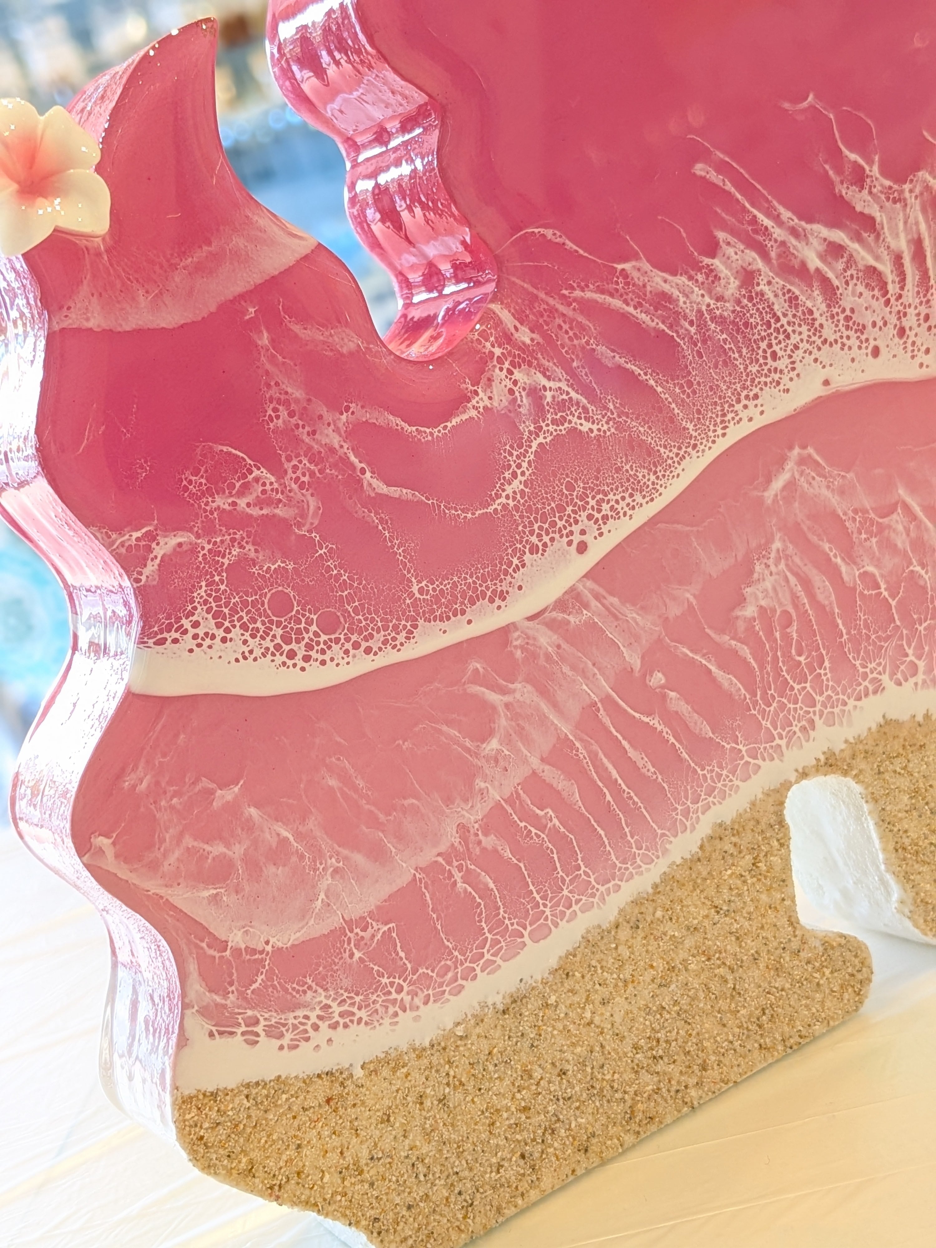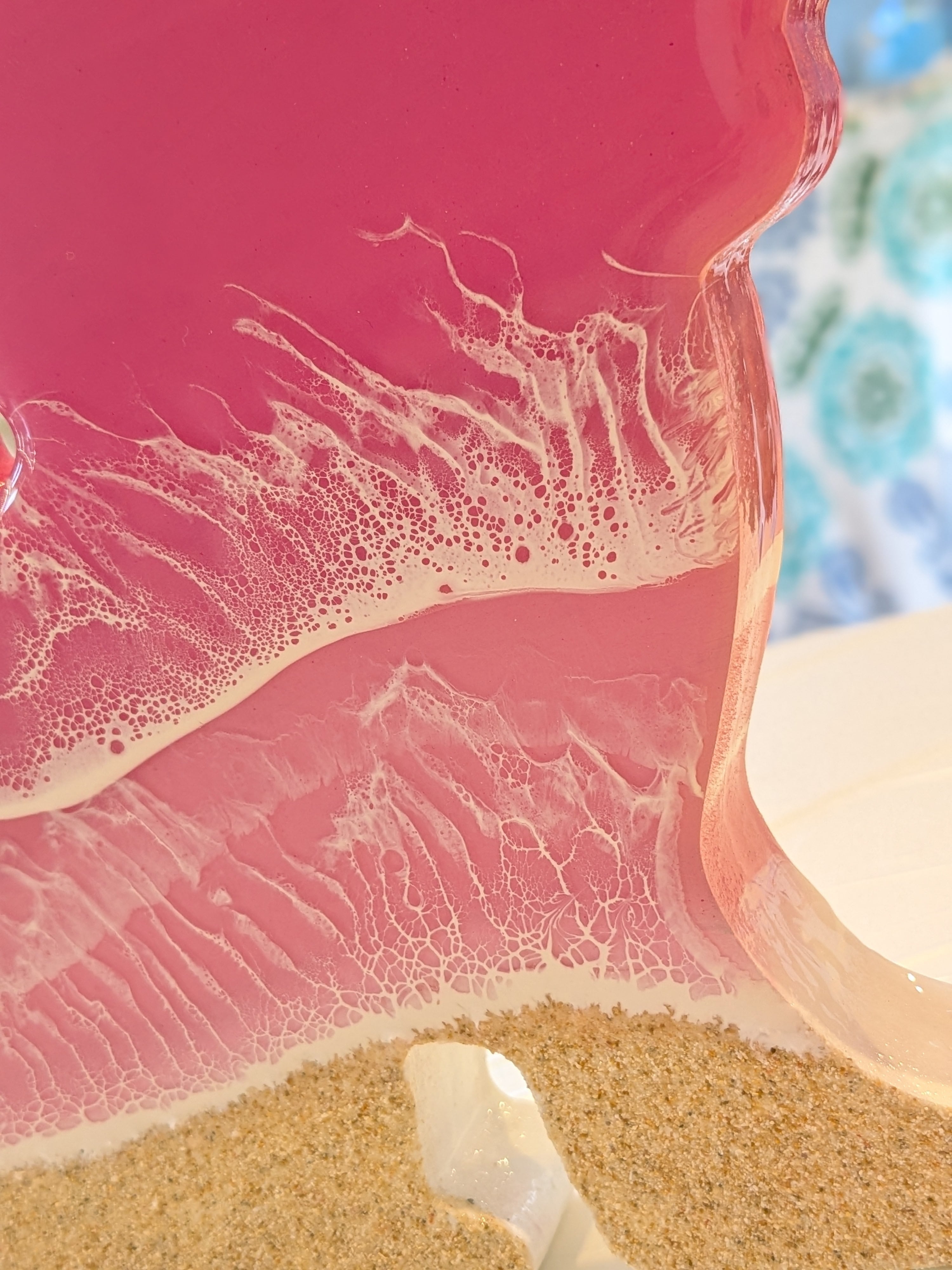 手作りのレジンアートは、透明感と光沢に満ちており、どの角度から見てもその魅力が引き立ちます。お部屋のインテリアとして、または大切な人への贈り物としても最適です。独自の風合いや模様のバラつきが、手作りならではの魅力を感じさせてくれます。