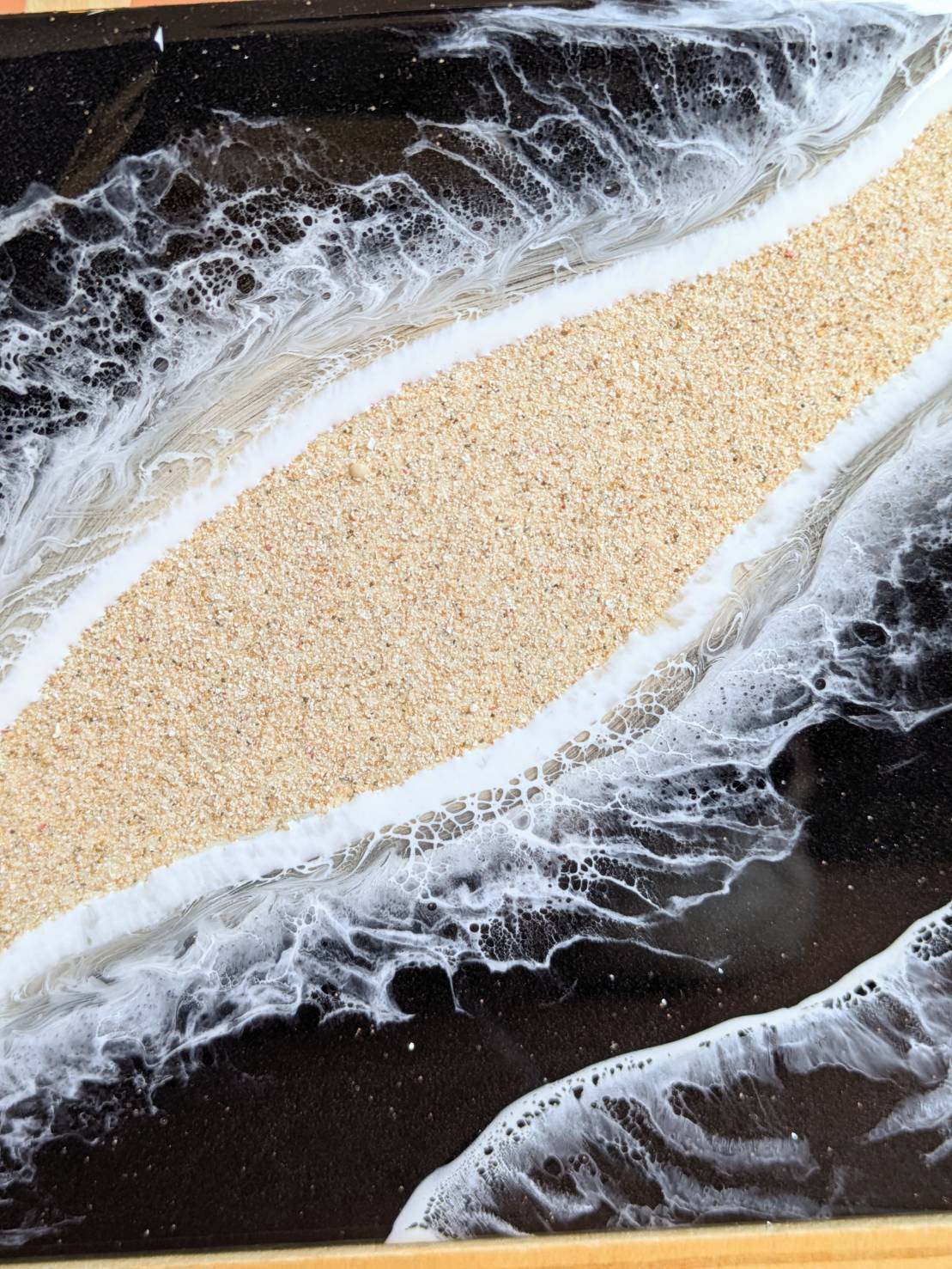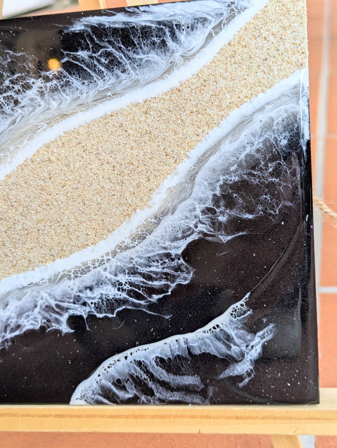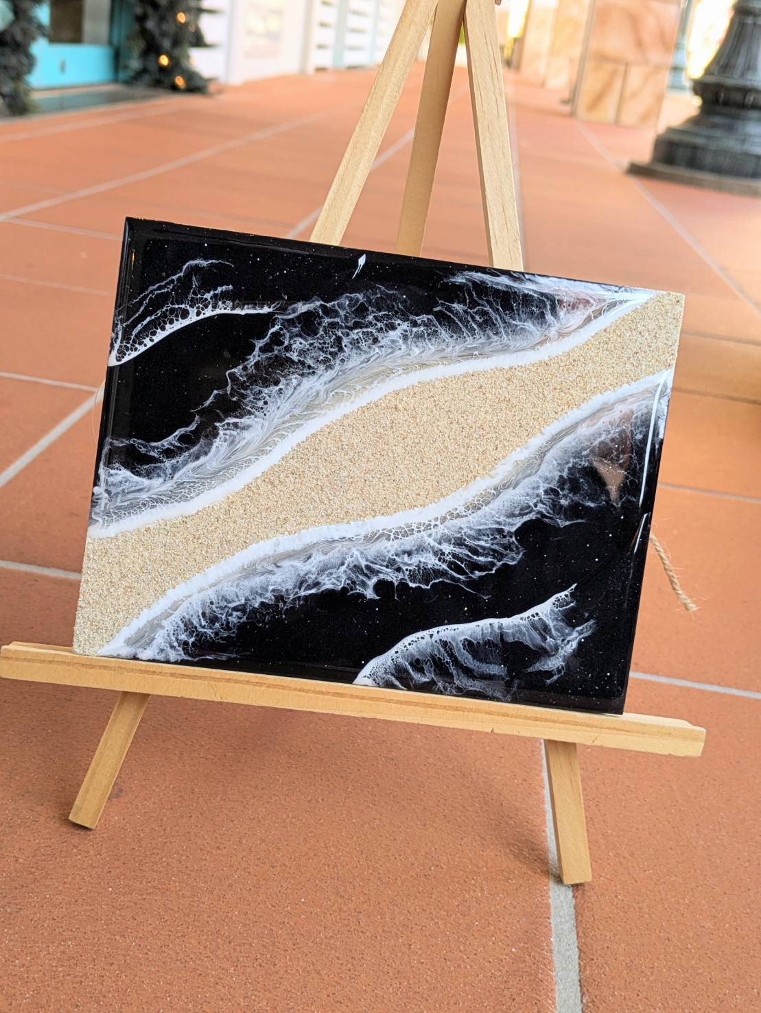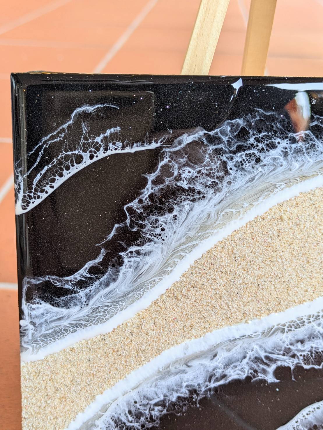 ①F0号パネル ブラックオーシャン 砂浜 レジンアート