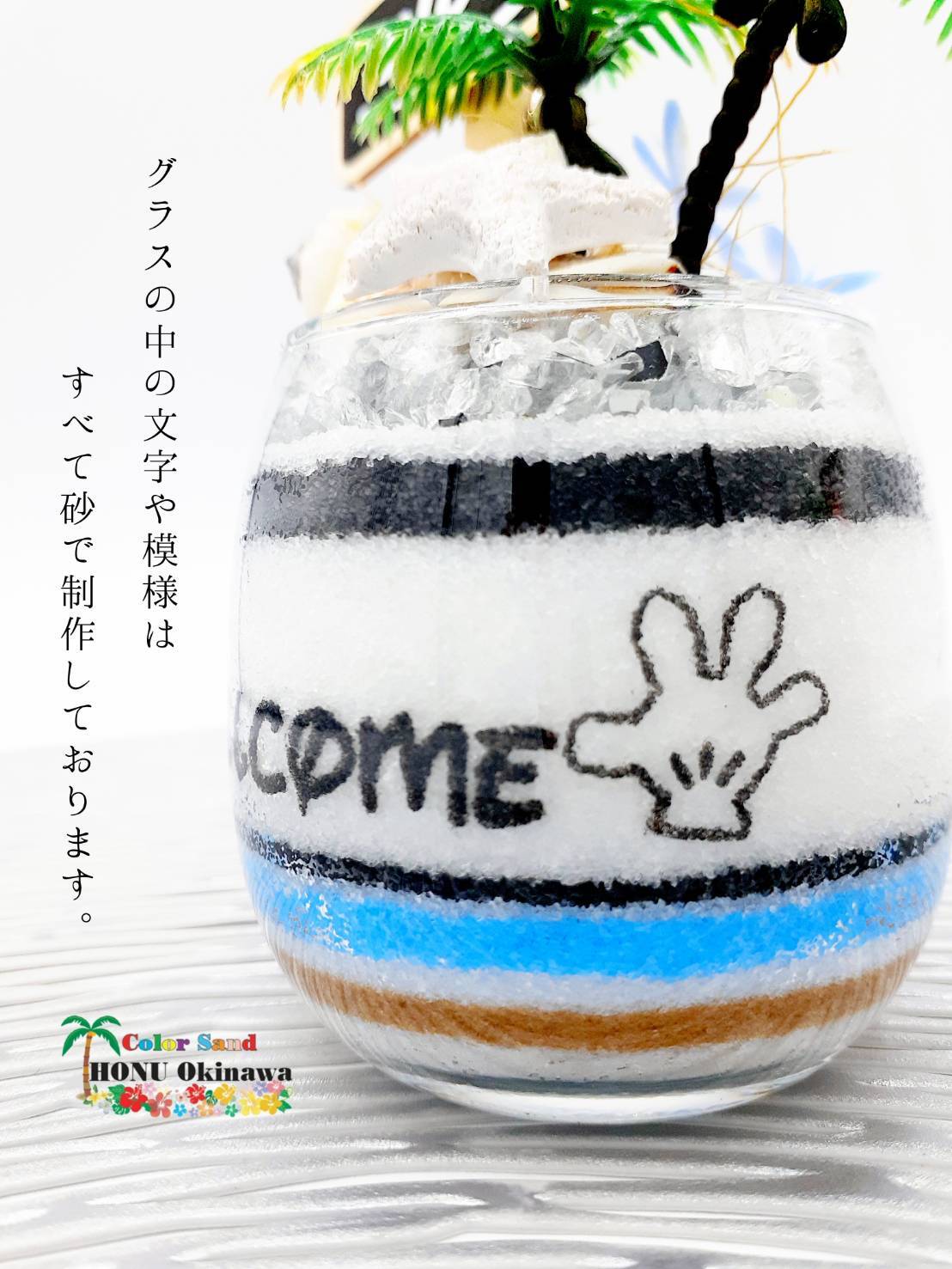 こちらはミニサイズの丸グラスに『welcome』の文字を入れた可愛らしい仕上がりとなってます。