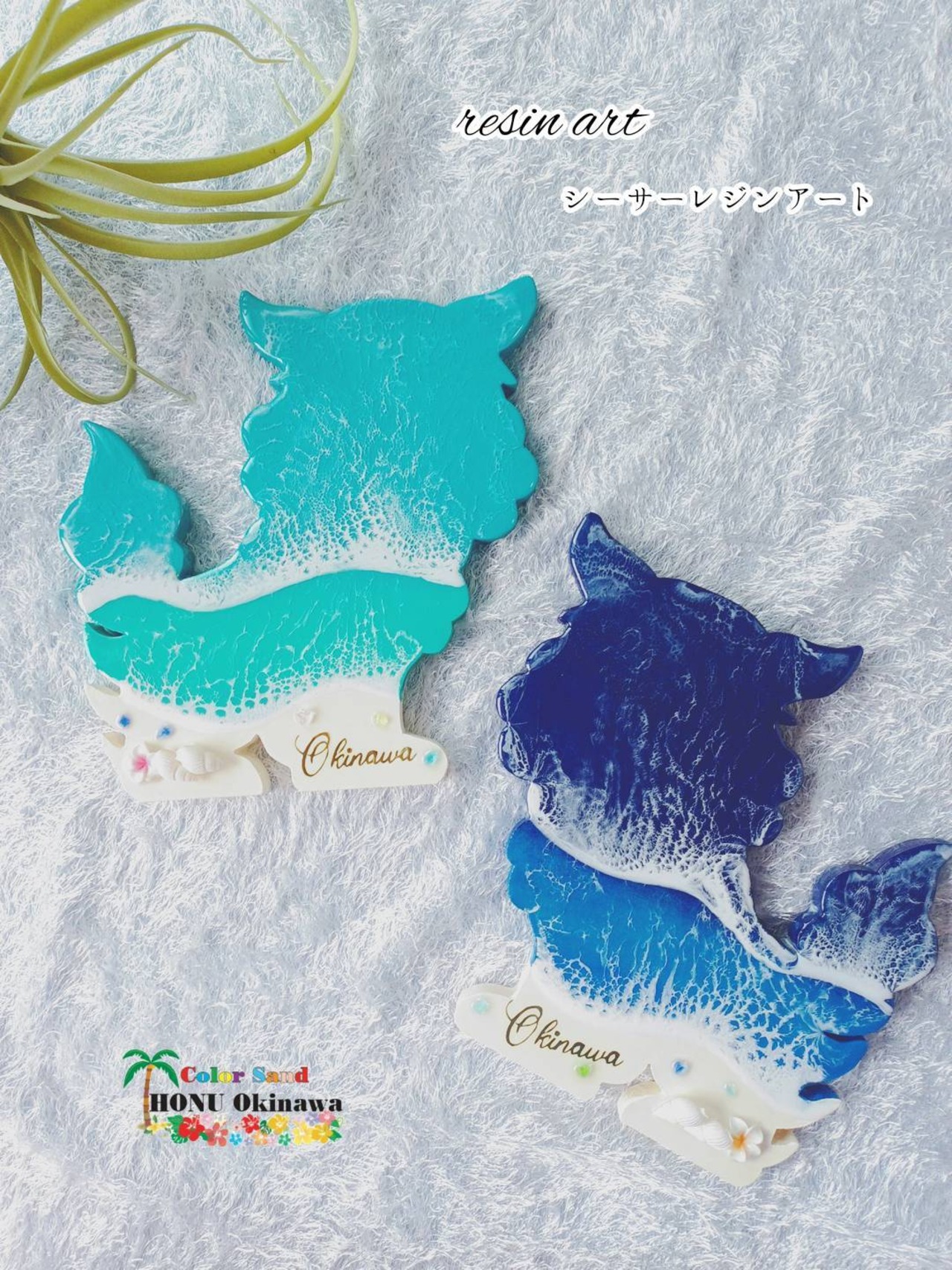 こちらはシーサー型のパネルに『Okinawa』の文字を入れ、海を表現した作品です。
