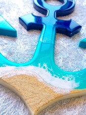 何処か懐かしいような、でもどこか現代的なイカリのオーシャンアートです。全て手作りで作り上げられた、美しい海の世界を表現したレジンアートです。