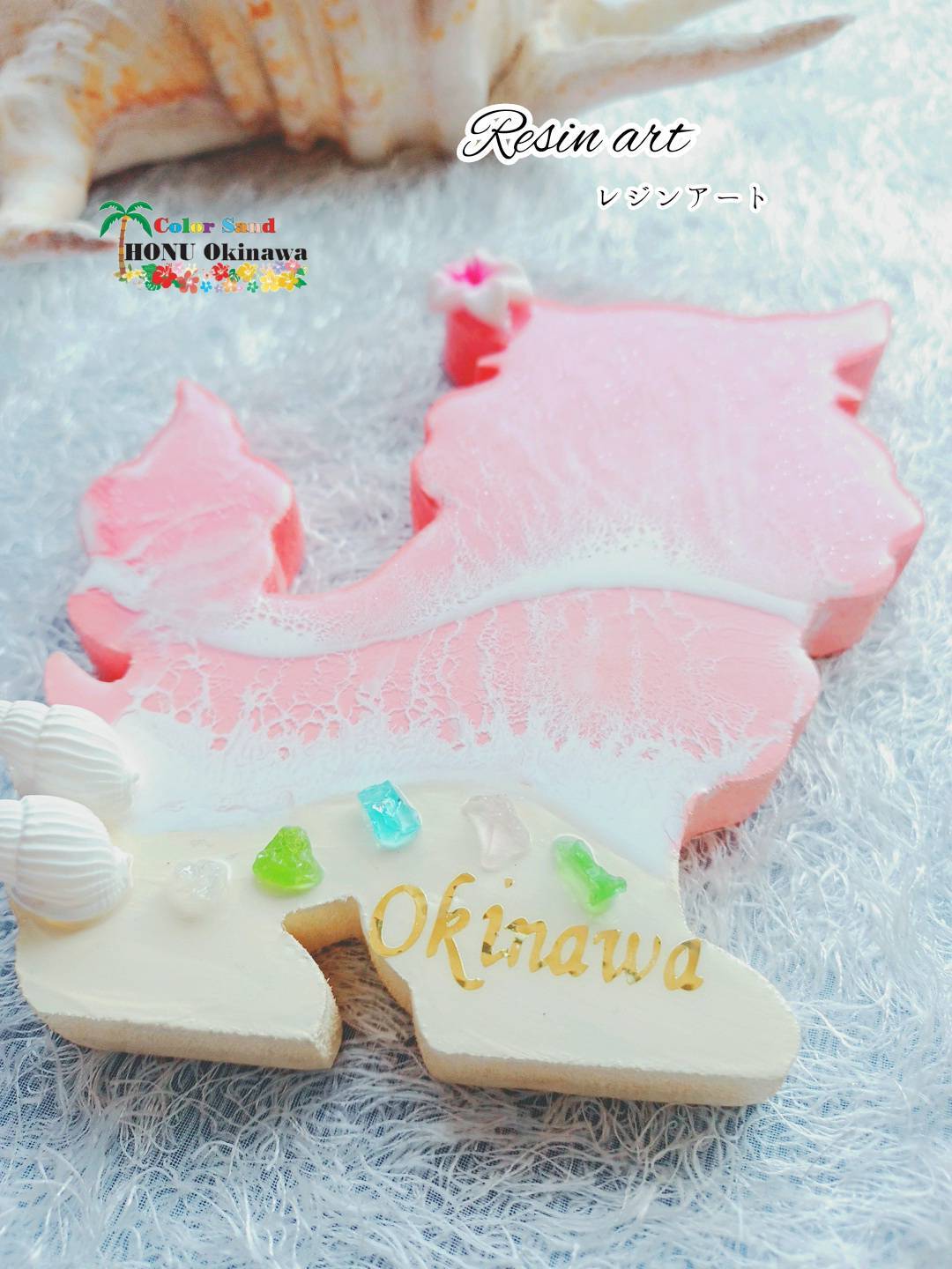 ミニシーサーのオーシャンアート パステルピンク×ピンク (メス) レジンアート