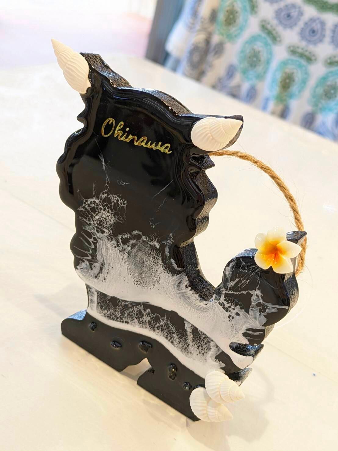 黒い海をイメージさせ、細やかなディテールと美しいブラックのカラーリングが目を引くオーシャンアート。ブラックのシーサー(守り神)が、あなたの部屋に上品な雰囲気をプラスしてくれることでしょう。